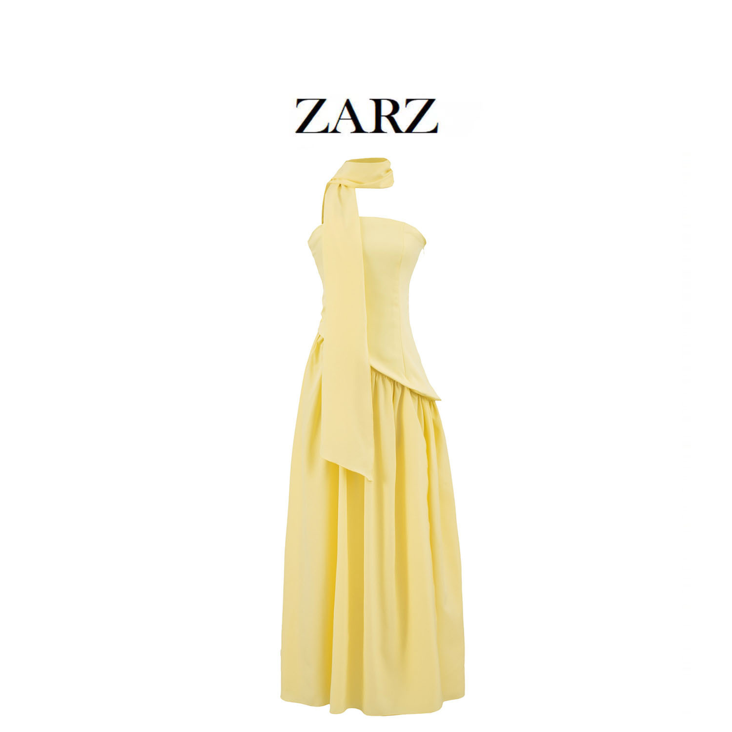 ZARZ Pakaian Wanita Model Baru Gaya Eropa dan Amerika Buatan Sendiri Gaun Lengan Panjang Membentuk Pinggang Kerah Segaris Modis Gaya Barat