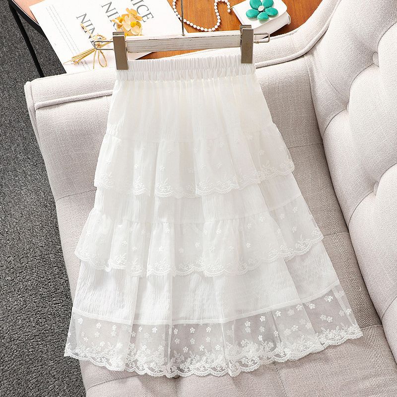 中大童女孩半身裙夏季新款韩版洋气蛋糕裙子中长款蕾丝花边公主裙