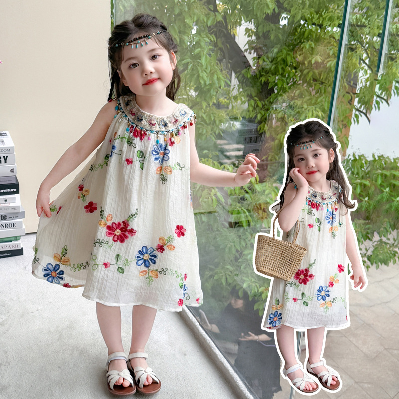 Gaun tanpa lengan anak perempuan, Gaun princess baru musim panas modis gaya Korea musim panas anak-anak ukuran sedang dan besar