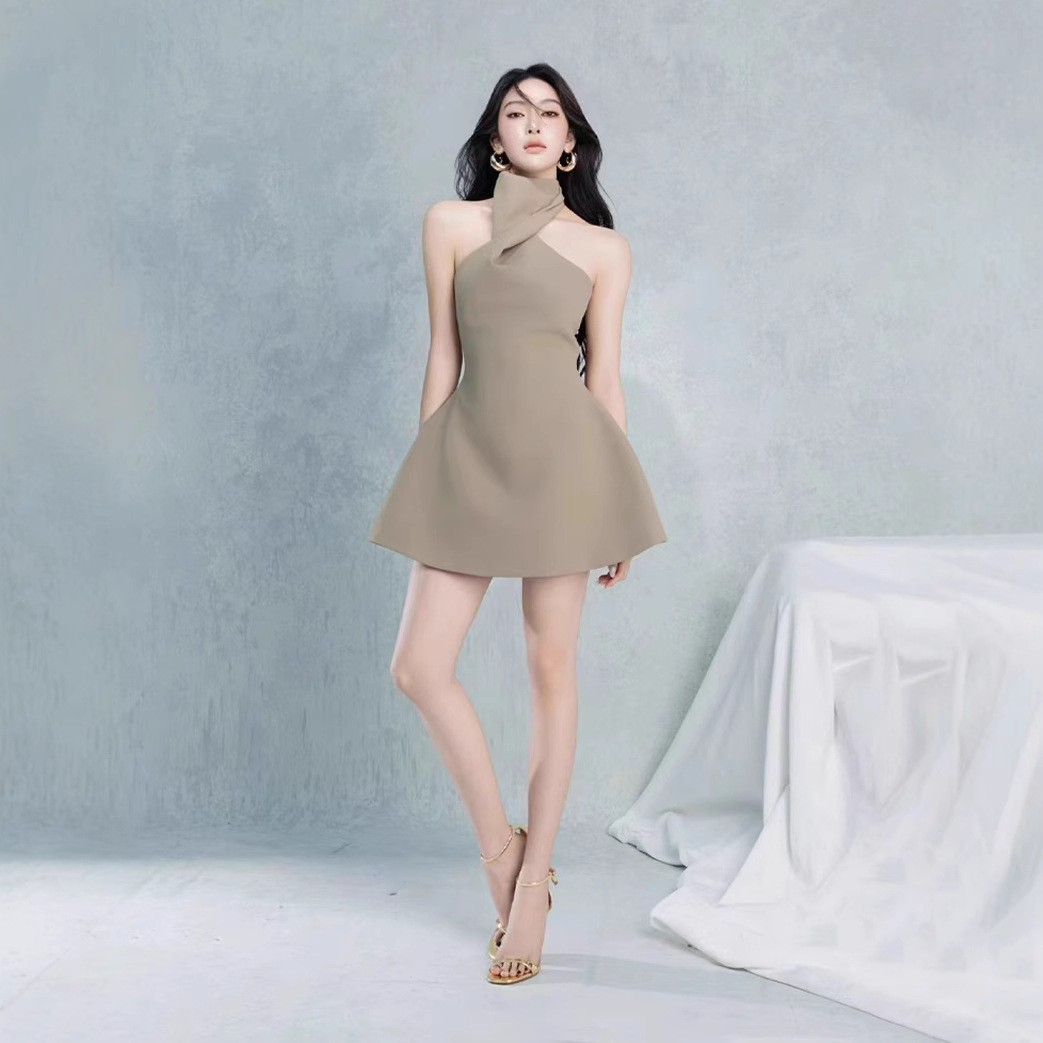 Pra-penjualan Rok Pendek Gantung Leher Desain Niche Vietnam Model Baru Elegan Sosialita Gaun Membentuk Pinggang Gaun 50060