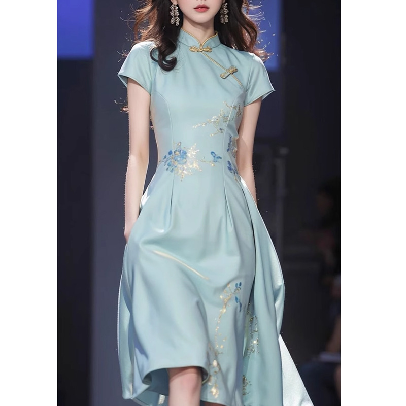 Gaun Cheongsam Modifikasi Gaya Tiongkok Baru Rok Panjang Menutupi Pinggul Ramping Terlihat Bagus Super Gaya Lembut Model Baru Musim Panas 2025