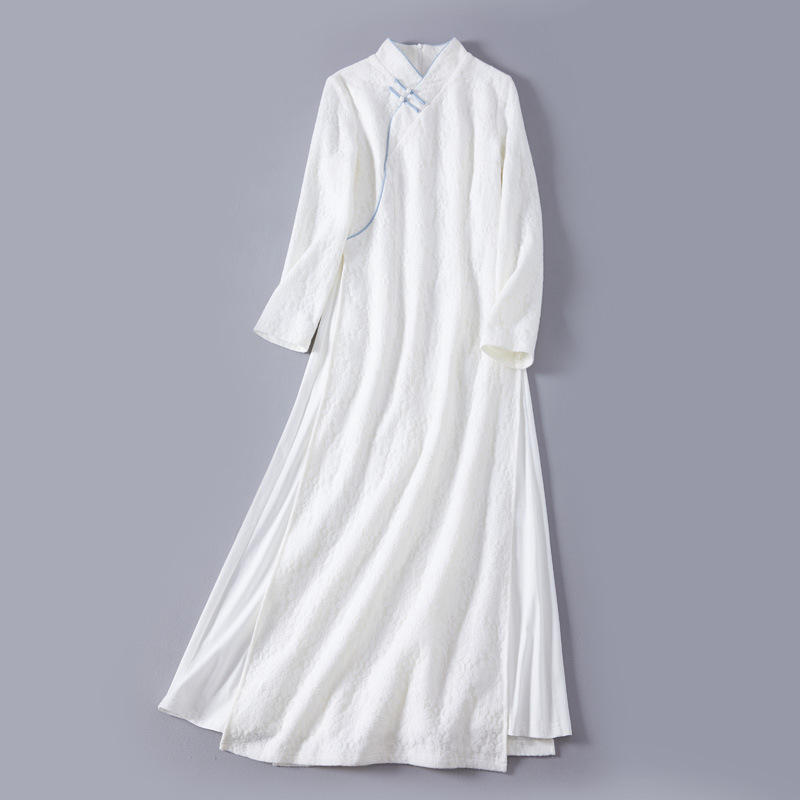 Teh Fu 2021 musim gugur dan musim dingin retro gaya Cina wol rajutan jacquard ditingkatkan cheongsam ao dai gaun panjang