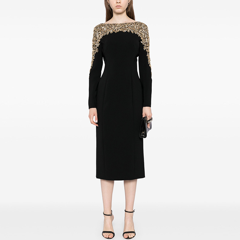 Gaun Gaya Sosialita Elegan Eropa dan Amerika Gaun Panjang Wanita Model Baru Musim Semi 2025 Rok Terusan Model Panjang dengan Desain Bertabur Berlian