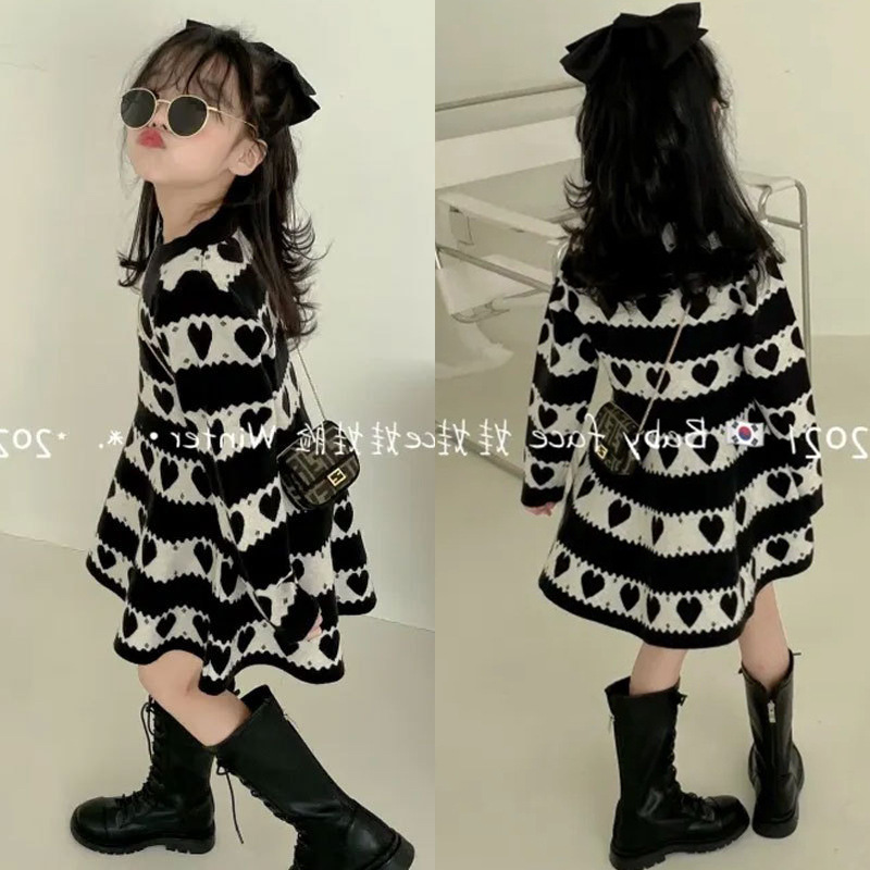 Gaun Putri Lucu Gaya Anak-anak Gaya Korea Musim Semi dan Musim Gugur 2025 Gaun Bottoming Rajutan Katun Cinta Bayi Perempuan Trbottomy