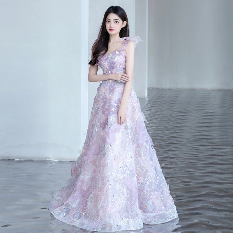 Gaun Malam Pekerja Berat Ungu Gaun Pesta Ulang Tahun Wanita dewasa Gaun Putri Pertunangan Sosialita Elegan Gaun Pesta Anggur Pengantin