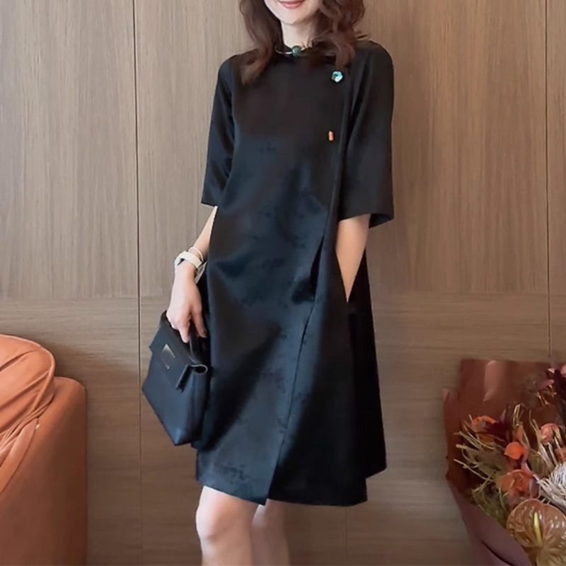 Gaun cheongsam baru untuk wanita, gaun gesper kerah berdiri mewah kelas atas ringan musim panas 2023