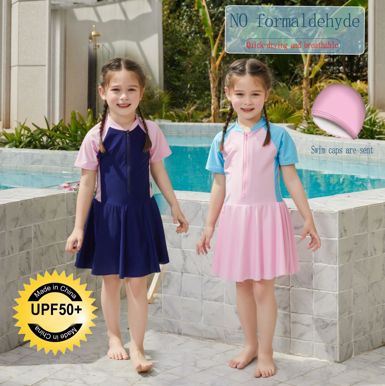 Baju renang anak perempuan pelindung matahari, baju renang anak perempuan perdagangan luar negeri, cepat kering, baju renang kartun, pakaian renang putri satu potong