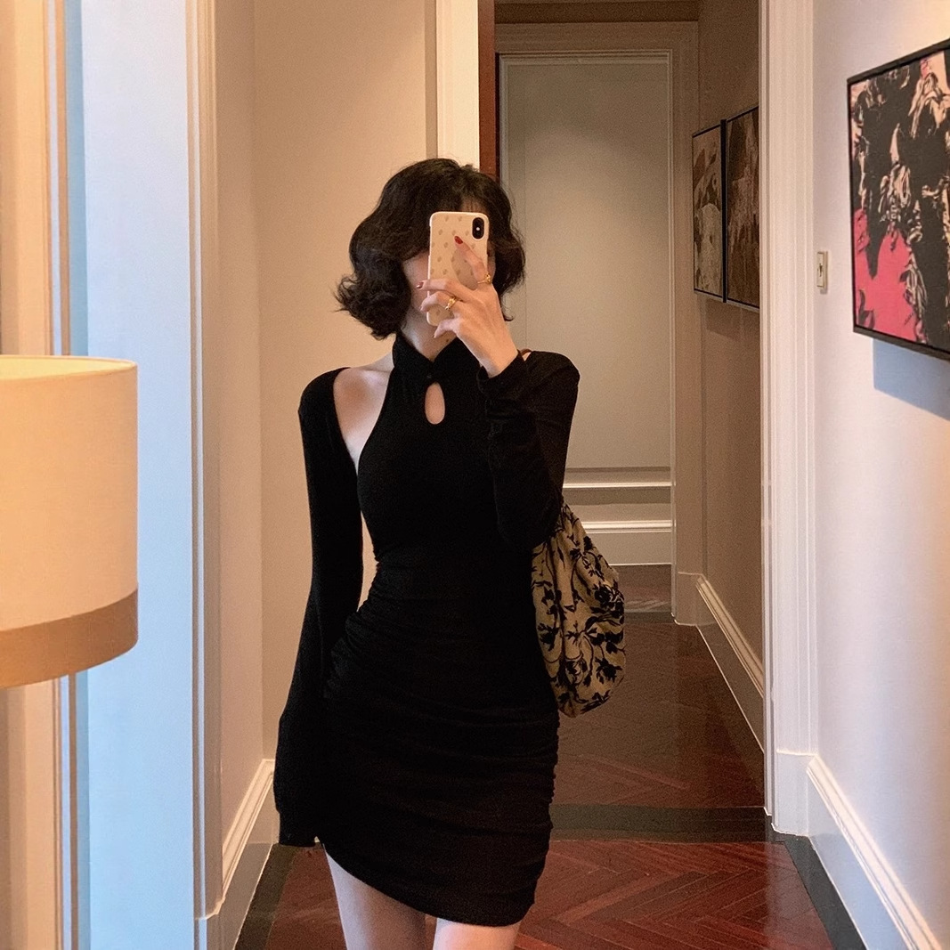 Gaun Cheongsam Modifikasi Warna Hitam Gaya Tiongkok Baru Elegan Gaya Tiongkok Baru Super Cantik Berkualitas Tinggi