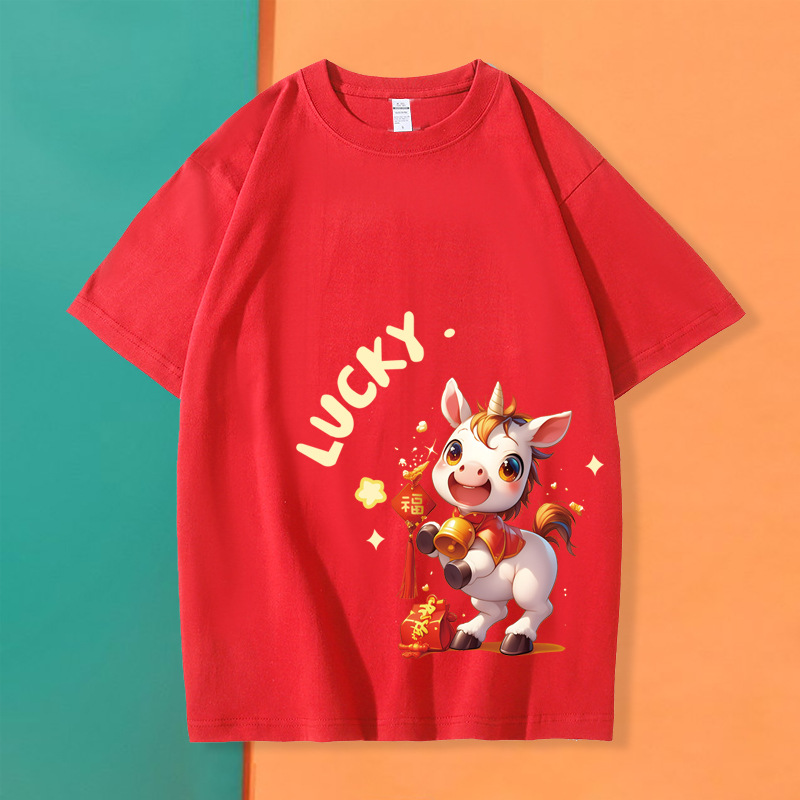 马年红色本命年亲子装短袖一家三四口过年喜庆活动聚会母女装t恤