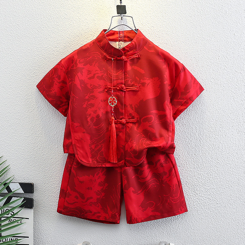 Pakaian Han Anak Laki-Laki Setelan Gaya Tiongkok Baru Musim Panas Pakaian Tang Gaya Nasional Anak-anak Hari Nasional Pakaian Harta Karun Pria Pakaian Kuno Anak Laki-Laki