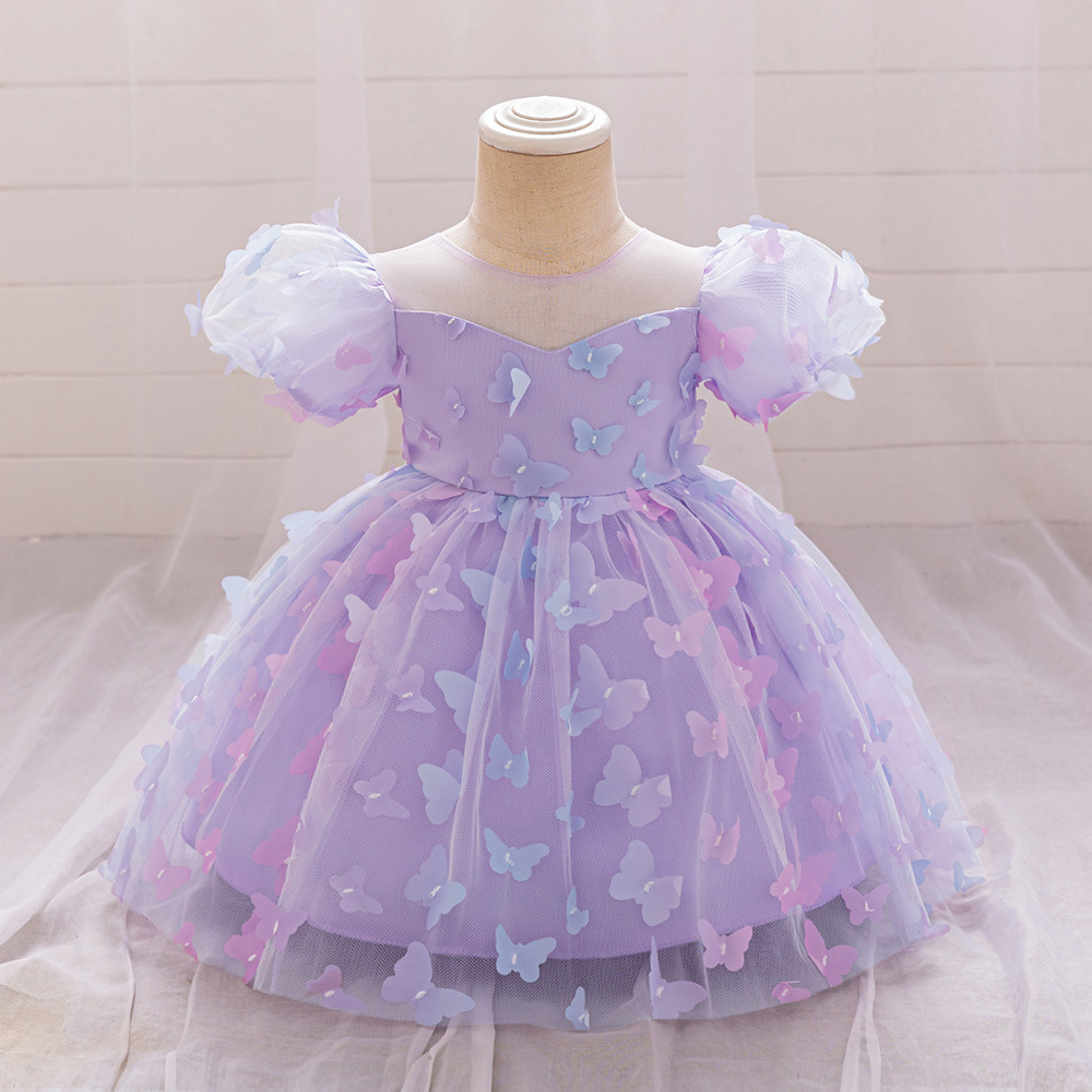 Gaun Bayi Model Baru Amazon Gaun Mencuci Kupu-Kupu Tiga Dimensi Anak Perempuan Rok Putri Lengan Busa Kasa Jala