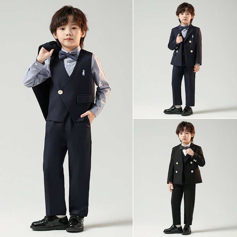 儿童西装套装男童花童婚礼服宝宝周岁中童钢琴演出服绣花马甲衣服