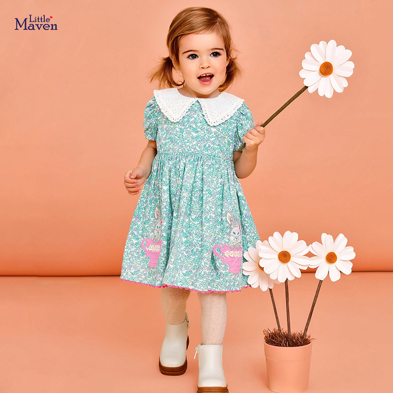 Little Maven Gaun Anak Perempuan Musim Panas Lengan Pendek Pakaian Anak-anak Eropa Amerika Lucu Kartun Rok Putri Anak-anak Grosir