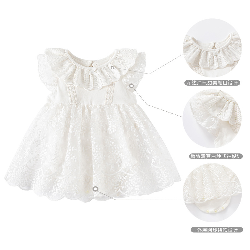 Gaun ketat bayi Musim Panas 2024 baju monyet jala putih manis baju ketat bayi baru