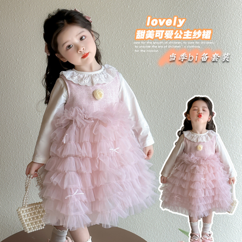 女童连衣裙套装春装2025新款洋气网纱裙子宝宝礼服春秋儿童公主裙