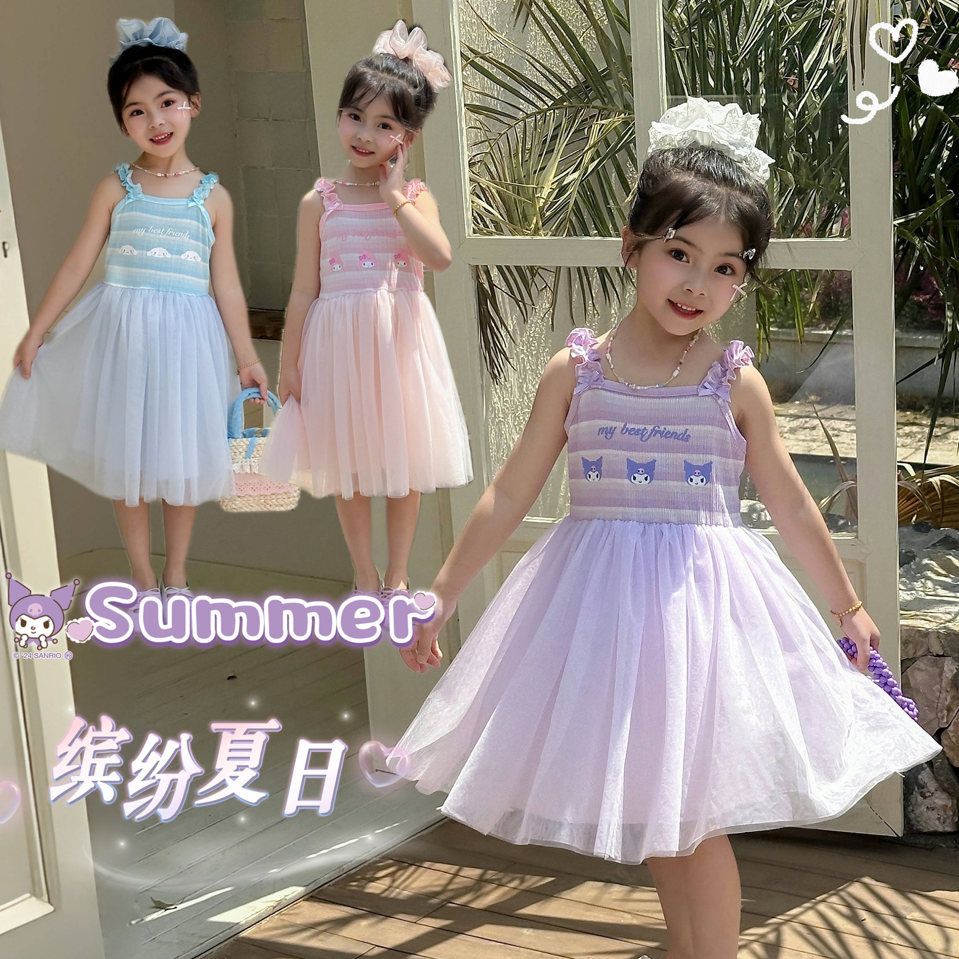 2025 Gaun Sling Anak Perempuan Musim Panas Model Baru Rok Putri Kartun Lucu Rok Kasa Jala Tank-top Putri Keren