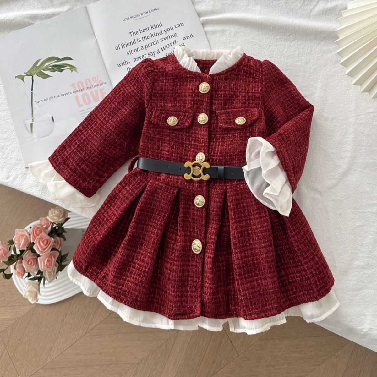 77353 儿童女童小香风外套冬季新款洋气时髦加绒公主裙外套送腰带