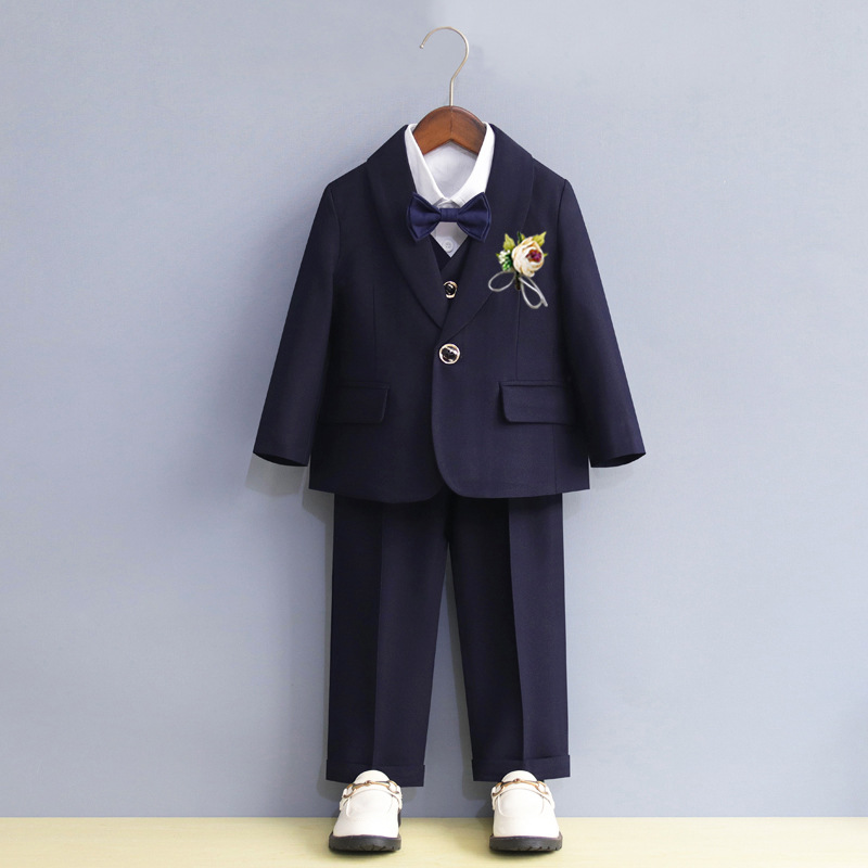 Setelan pakaian anak laki-laki perempuan, bunga gaun pernikahan ulang tahun bayi laki-laki tampan