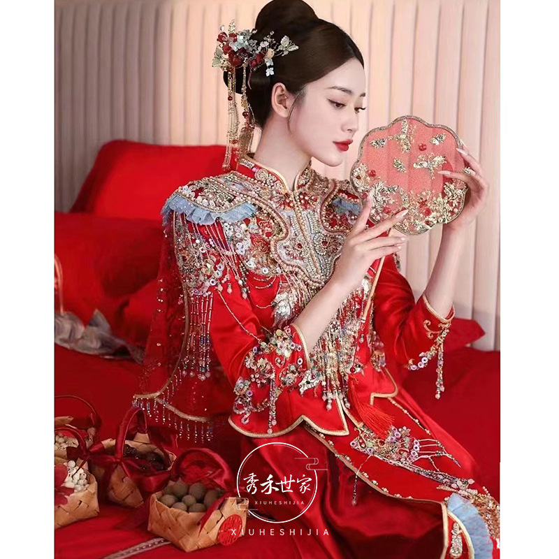 Ming Xiuhe gaun pengantin wanita, gaun pernikahan industri berat mahkota phoenix musim panas musim semi dan musim panas 2024