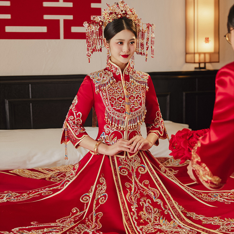 Gaun pernikahan Xiuhe China, gaun pernikahan untuk wanita Xiuhe baru 2022