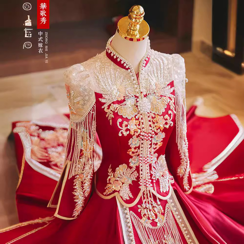 Pakaian Xiuhe Pakaian Pengantin Wanita Model Baru 2025 Pakaian Pernikahan Kelas Atas Industri Berat