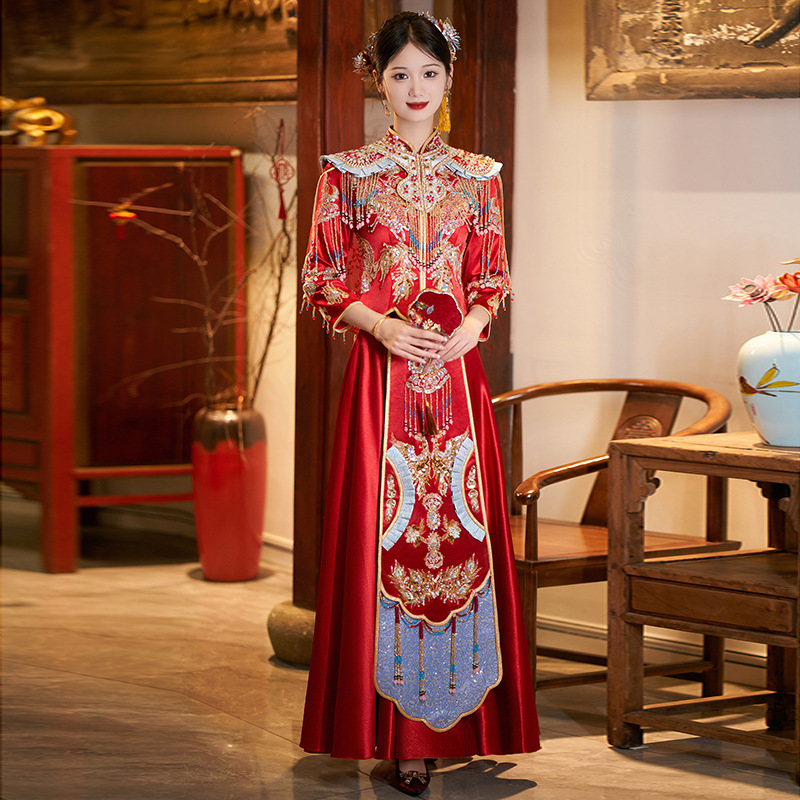Pakaian Bersulam Pengantin Wanita Bersulam Pakaian Pesta Pernikahan Pakaian Pernikahan Pakaian Pesta Pernikahan Gaun Pesta Pernikahan Baru Cheongsam Gaya Tiongkok