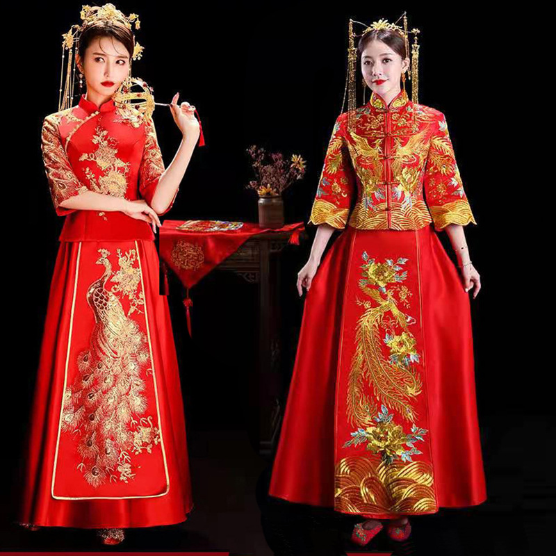 Gaun pernikahan Retro baru gaun pengantin Xiuhe dan gaun phoenix gaun pernikahan sama bayi gaun roti panggang Cina gaun pernikahan cheongsam