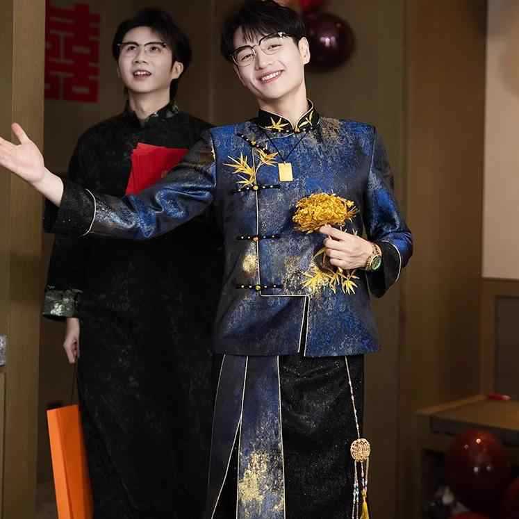 Pakaian Pria Kelas Atas Pakaian Pernikahan Pakaian Pengantin Pria Kancing Kancing Model Tiongkok Model Baru Tahun 2025