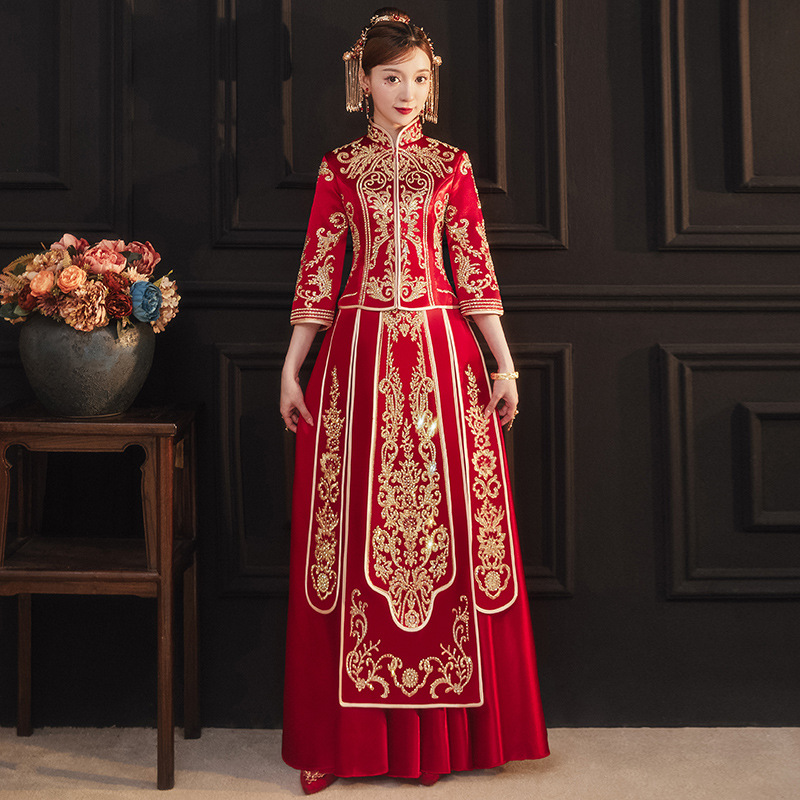 Gaun pernikahan Retro baru gaun pengantin Xiuhe dan gaun phoenix gaun pernikahan sama bayi gaun roti panggang Cina gaun pernikahan cheongsam