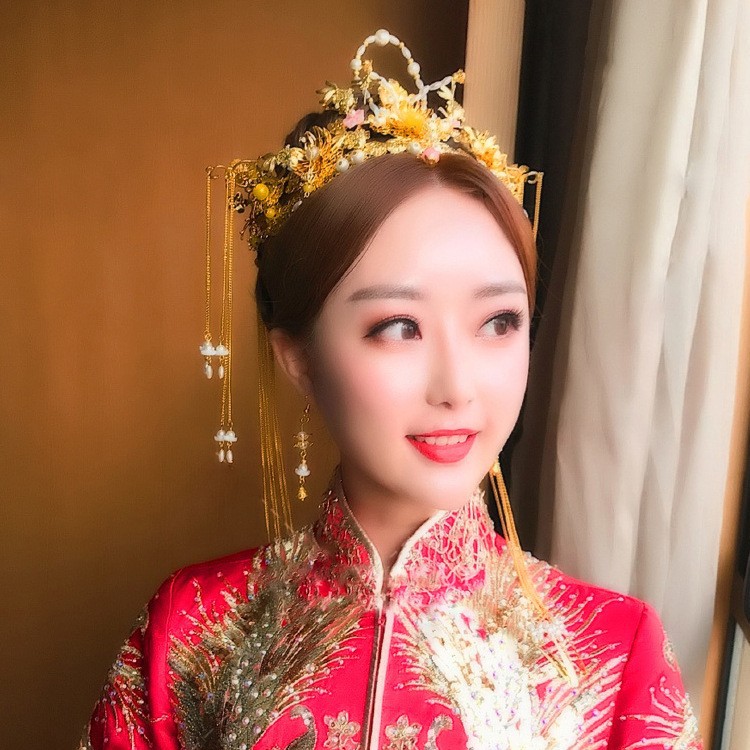 Hiasan Kepala Pengantin Wanita Jepit Rambut Gaya Tiongkok Baru Gaun Bunga Imitasi Cheongsam Jubah Pagi Pakaian Hanfu Bersulang Aksesori Rambut Xiuhe