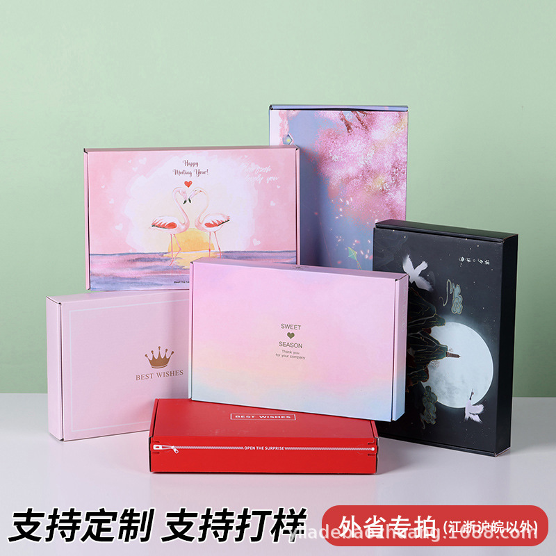 Kotak risleting pesawat bebas lem kotak warna karton penyegelan diri kotak warna Cetak panjang persegi mudah ditarik kotak hadiah pakaian