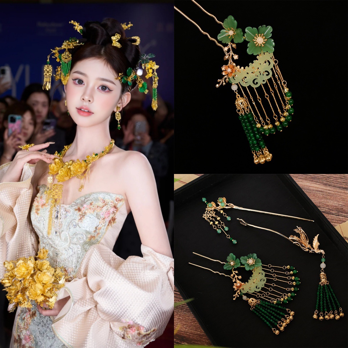 Jepit Rambut Paduan Gaya Tiongkok Baru Retro Jepit Rambut Goyang Jade Points Points Batu Giok Points Jubah Pagi Xiuhe Aksesoris Pakaian Kuno Hanfu Jepit Rambut