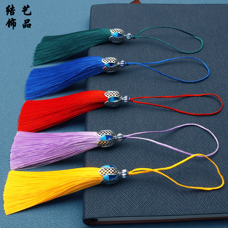 Cloisonne rumbai logam enamel gantung rumbai biru topi pembatas buku casing telepon rumbai kecil liontin grosir
