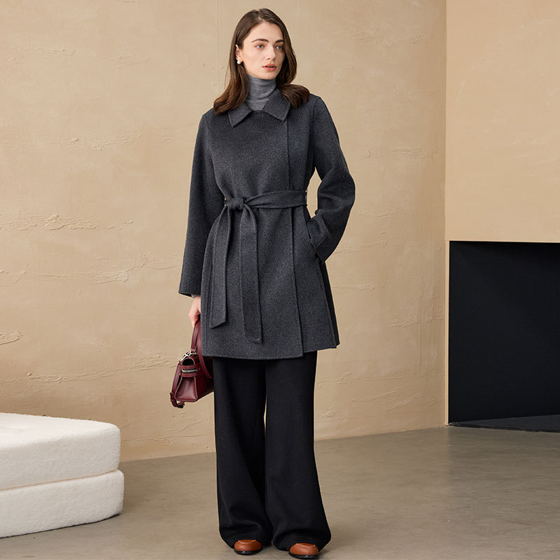 Jas Kasmir Murni Musim Gugur/Dingin 2025, Mantel Wol Dua Sisi untuk Wanita Bertubuh Mungil, Jaket Kasmir Murni Kancing Tunggal Kasual.