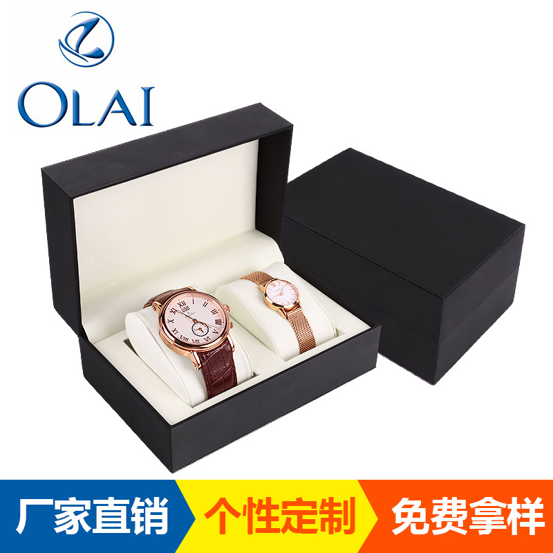 Kotak jam tangan pasangan tempat duduk ganda grosir pabrik kotak penyimpanan jam tangan kulit PU 2 buah
