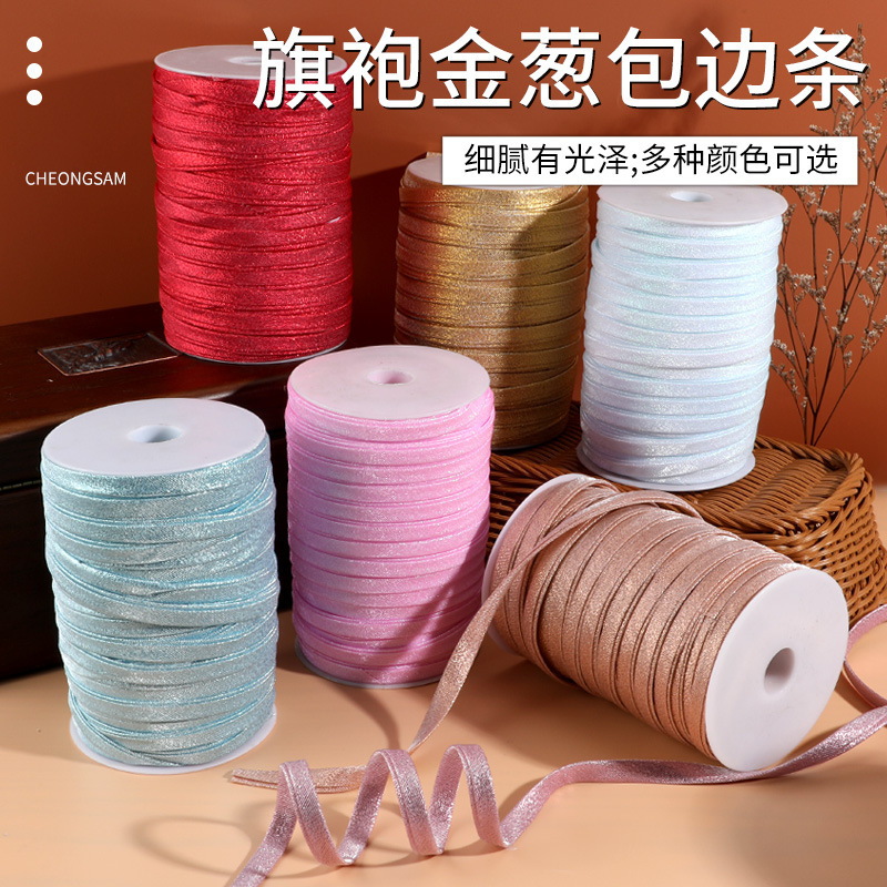 Cheongsam Strip Sisi Pembungkus Pinggiran Satin Kristal Bebas Panas Lipat Setelan Pakaian Pakaian Pinggiran Gulung Baju Pengantin