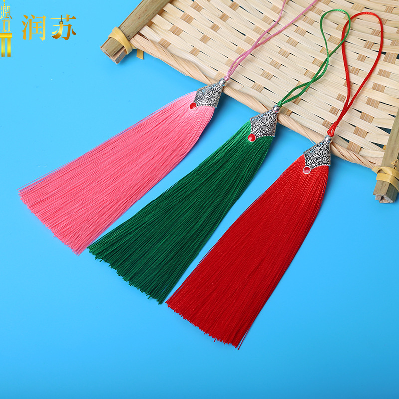 Runsu rumbai 12cm topi mulut ikan rumbai gaya Cina ornamen aksesori Hanfu fan liontin pabrik grosir