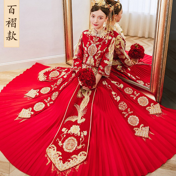 Gaun pengantin Xiuhe 2020, gaun pernikahan panggang baru, gaun Tiongkok, pakaian wanita grosir