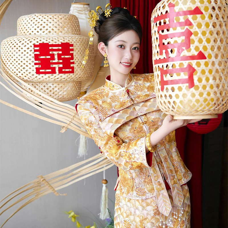 Gaun Pernikahan Gaya Tiongkok Baru Gaun Pernikahan Model Baru 2025 Cheongsam Industri Berat Model Baru Pakaian Bersulang Pakaian Bersulang Pengantin Wanita Rasa Musim Panas Kelas Tinggi