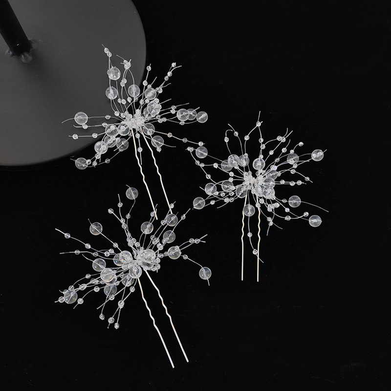 Jepit rambut pengantin berbintang kristal putih, aksesori rambut Hanfu pakaian pernikahan benang sutra cocok untuk semua