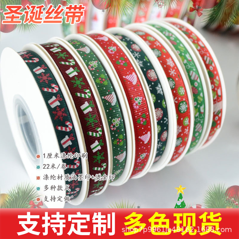 Kotak kemasan mainan hadiah Natal agen cetak pita Natal 1cm aksesori pakaian grosir perhiasan