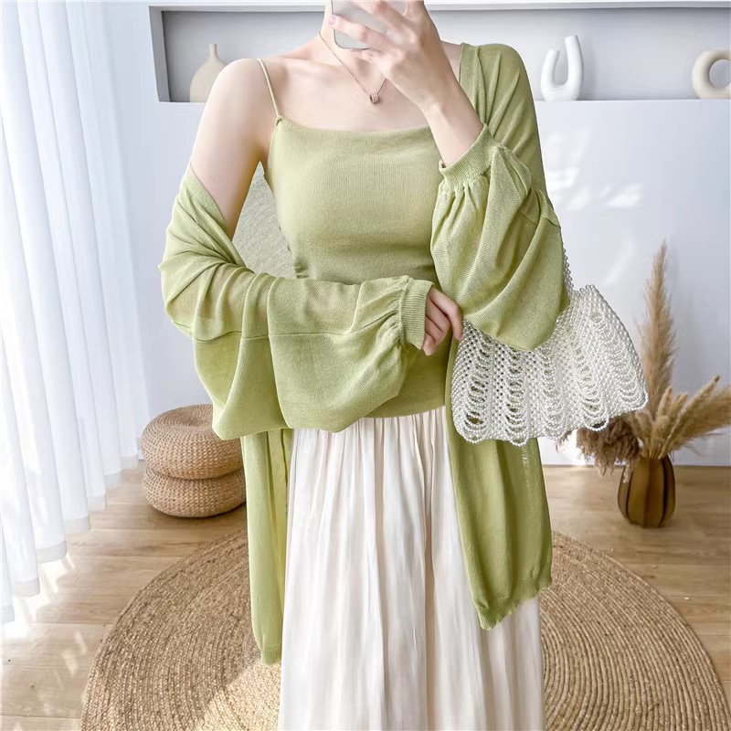 Pakaian Musim Panas Kardigan Selendang AC Longgar Model Baru Atasan Rajutan Sutra Es Lengan Panjang Jaket Perlindungan Matahari Model Tipis
