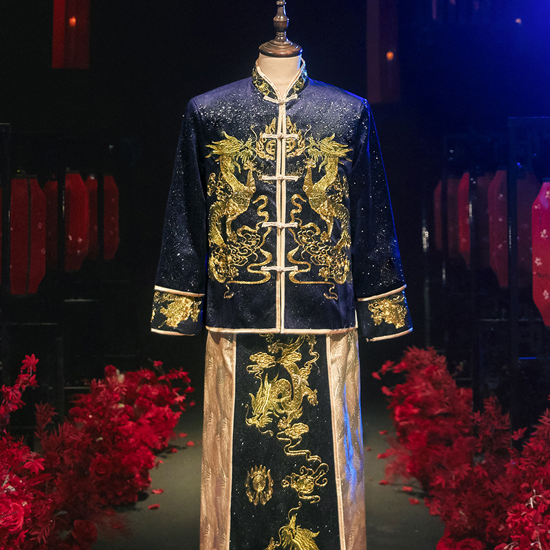 Xiuhe setelan pengantin pria, gaun pernikahan gaya Cina baru, gaun Roti Bakar pernikahan, gaun kimono Xiuhe naga dan phoenix musim semi 2021