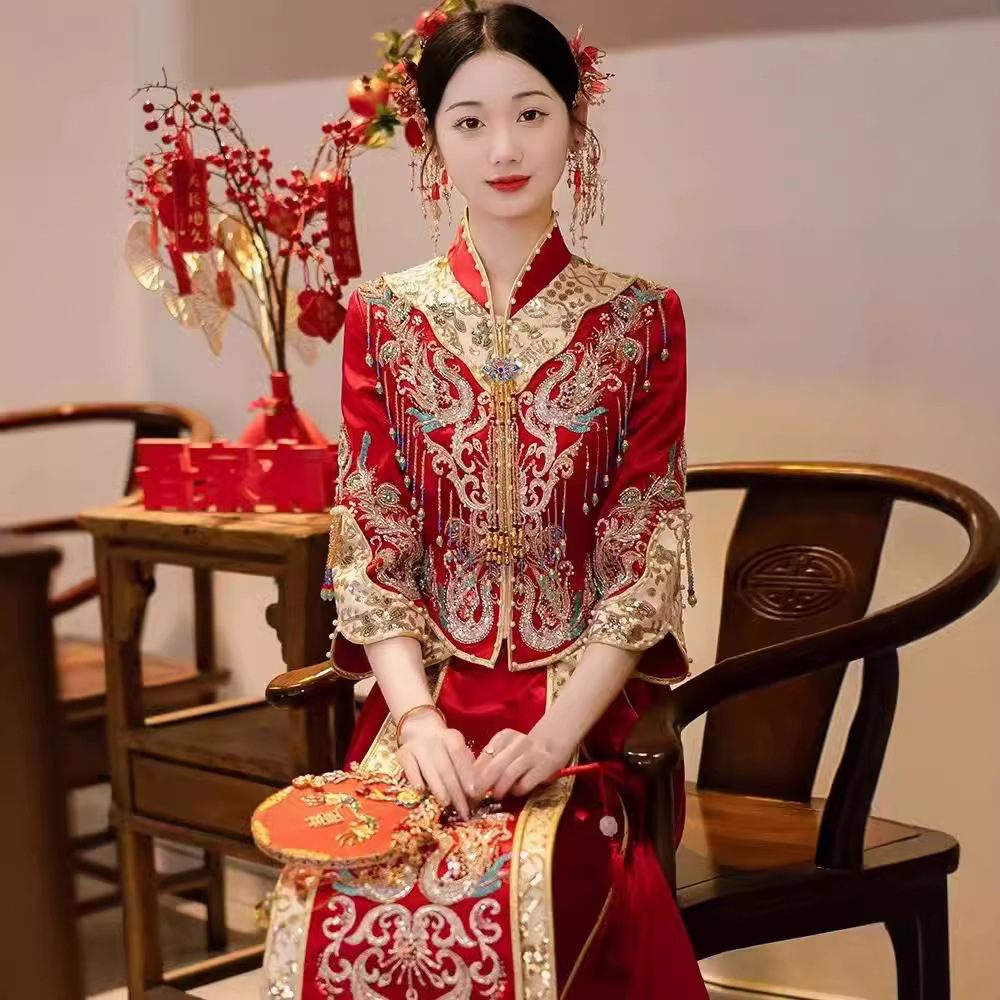 Pakaian Xiuhe Pakaian Pernikahan Pengantin Wanita Mewah Kelas Atas Model Baru 2025 Pakaian Pernikahan Gaya Tiongkok Gaun Pengantin Wanita Ukuran Besar Pakaian Pernikahan