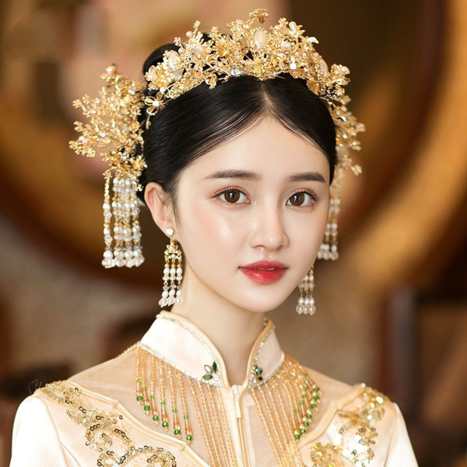 Kostum kuno hiasan kepala pengantin Xiuhe, pakaian hiasan kepala pengantin, kostum kuno Xiuhe toast, aksesori pakaian