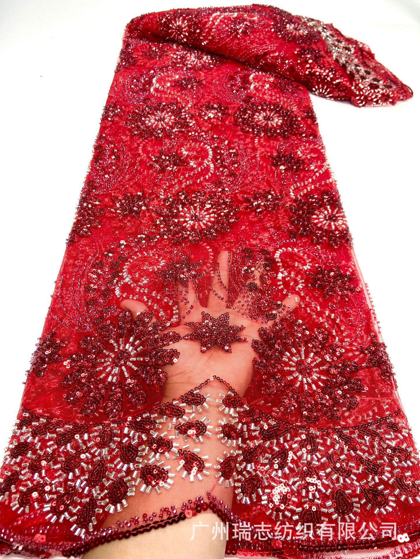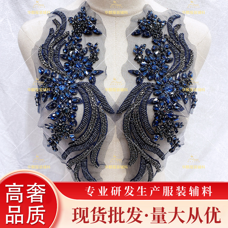 Sejumlah besar barang tersedia Renda Manik-Manik Renda Bunga Phoenix Berlian Gaun Pernikahan Bordir Manik-Manik Berlian Imitasi
