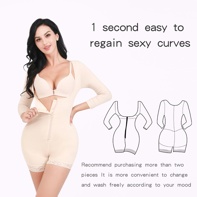 Korset ukiran tubuh lengan panjang, pakaian dalam pembentuk tubuh satu potong punggung menutupi perut, mengangkat pinggang