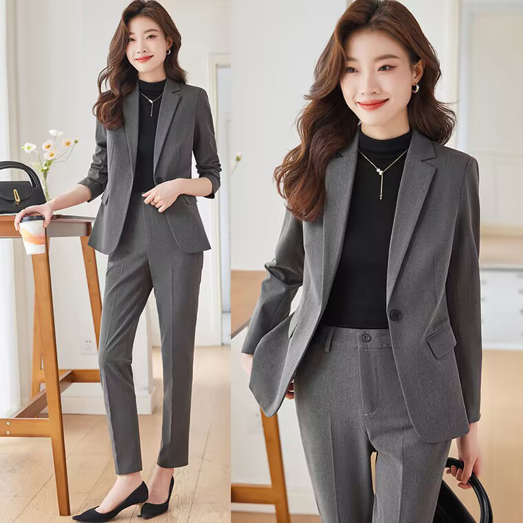 Setelan abu-abu pakaian formal wanita, pakaian formal wanita kelas atas temperamen gaya dewi, setelan wawancara, overall baru 2023