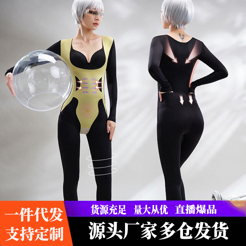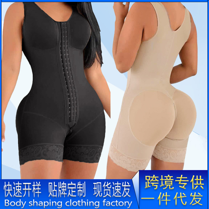 Bodysuit pembentuk tubuh, jumpsuit pembentuk perut selangkangan ritsleting tiga baris pembentuk tubuh