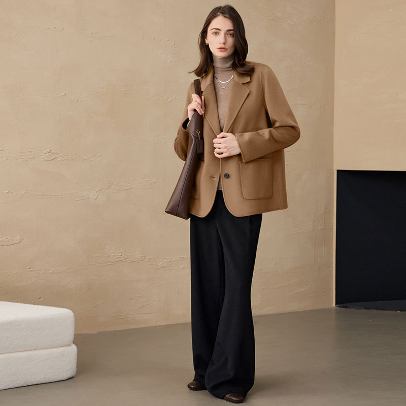 Max mantel kasmir dua sisi 30%, mantel buatan tangan M, mantel wol tekstur kerah besar